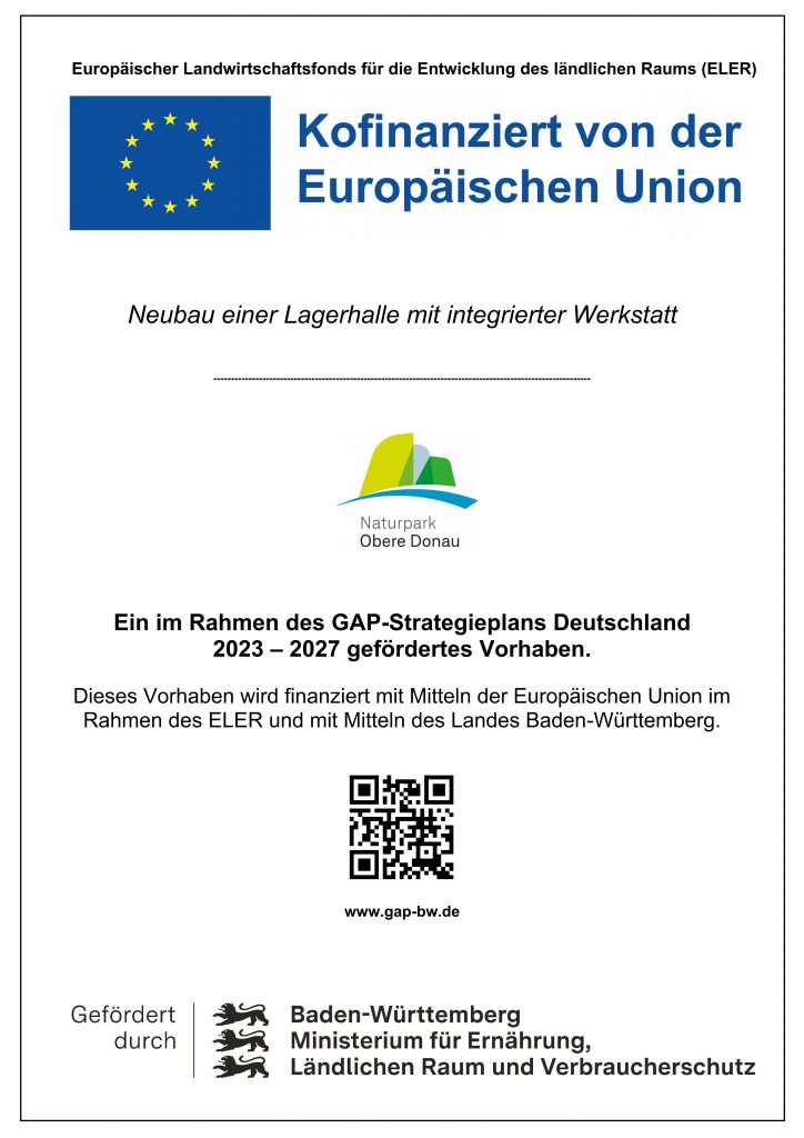 Das Projekt wird durch den Naturpark Obere Donau im Rahmen der EU- und Landesförderung (GAP-Strategieplan Deutschland) unterstützt. Es leistet einen wichtigen Beitrag zur Erhaltung der Kulturlandschaft, zur Förderung der biologischen Vielfalt, zur Umweltbildung sowie zur nachhaltigen Entwicklung des ländlichen Raums im Naturpark Obere Donau.